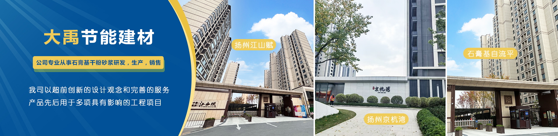 揚州市大禹節(jié)能建材科技有限公司成立于2005年9月,位于聯(lián)合國宜居城市---江蘇省揚州市,地處江都經(jīng)濟開發(fā)區(qū),與揚、鎮(zhèn)、泰三市接壤,交通十分便捷。公司是專業(yè)從事石膏基干粉砂漿研發(fā),生產(chǎn),銷售一體化的綜合性科技型企業(yè),為國家標準GB/T2862-2012《抹灰石膏》的參編單位。 公司擁有國內(nèi)一流的特種砂漿生產(chǎn)線,并配有各種先進的檢測儀器,年生產(chǎn)能力可達10萬噸。各崗位管理及技術人員齊備,對產(chǎn)品···